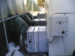 Kanał powietrza wlotowego i wylotowego, przepustnice powietrza wlotowego i wylotowego, żaluzja regulacyjna powietrza, komin kwasoodporny L=1,5mb.