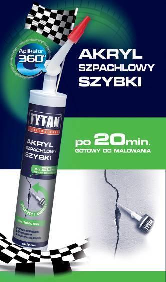 Kiedy zmuszeni jesteśmy do wykonania prac konserwatorskich związanych z wypełnianiem ubytków w ścianach, na sufitach czy na fasadach, doskonale swoje zadanie spełnia Tytan Professional Akryl Szpachlowy Szybki. Jest to akryl o lekkiej konsystencji, który pozwala na wypełnianie ubytków w ścianach, sufitach i fasadach bez nakładania wielu warstw. Produkt jest gotowy do obróbki i malowania już po 20 minutach od aplikacji. Uszczelniacz cechuje doskonała przyczepność do większości powierzchni porowatych. Idealnie nadaje się do wypełniania rys oraz pęknięć w ścianach i sufitach, maskowania wkrętów i mocowań przy montażu ścianek działowych czy sufitów podwieszanych. Produkt nie pęka i nie ulega kruszeniu. Może zastępować masy szpachlowe.