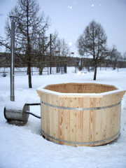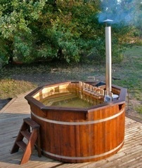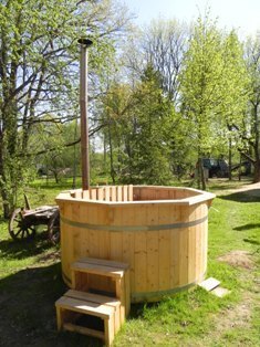 Mamy do zaoferowania 5-7 miejscową zewnętrzną balię kąpielową. Takiej wielkości balia świetnie nadaje się dla rodziny albo niedużego grona przyjaciół.