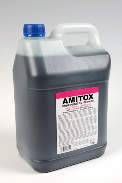 Środek do ochrony drewna przed grzybami, pleśnią, owadami, chorobami drewna,o szczególnie korzystnym stosunku jakości do ceny. Amitox jest gotowym do użycia produktem przeznaczonym do zabezpieczania drewna nie narażonego na bezpośrednie działanie warunków atmosferycznych. Znakomicie nadaje się do drewna konstrukcyjnegoi dekoracyjnego. Może być stosowany do malowania, natryskiwania oraz do impregnacji zanurzeniowej i ciśnieniowej. Użyty pod farby i lakiery podnosi odporność biologicznąi trwałość drewnianych elementów konstrukcyjnych. Działa niszcząco na istniejące grzyby, zabezpiecza przed rozwojem nowych. Zawiera zielony barwnik kontrolny.