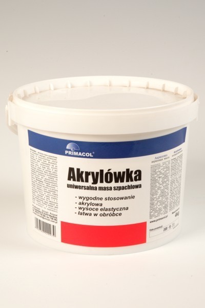 Gotowa do użytku akrylowa masa szpachlowa, do wyrównywania niewielkich nierówności i ubytków na powierzchniach: płyt gipsowo-kartonowych, drewnianych, drewnopodobnych oraz tynków. Idealna do drobnych napraw i korekt ścian, wygodna w użyciu (nie wymaga mieszania ), łatwa w obróbce. Akrylówka jest szybkoschnąca, elastyczna (odporna na pękanie), po wyschnięciu biała.