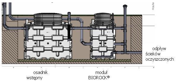 Oczyszczalnia przydomowa BIOROCK® składa się z dwóch zasadniczych elementów połączonych przewodami hydraulicznymi i wentylacyjnymi: osadnika wstępnego (gnilnego) oraz reaktora biofiltracyjnego Biorock.