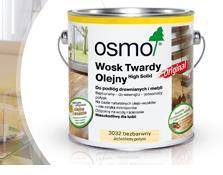 Wosk Twardy Olejny Osmo chroni i uwydatnia pozytywne cechy drewna. Jest zalecany do wszystkich podłóg drewnianych, korkowych i płyt OSB. Sprawia że podłoga drewniana jest doskonale naturalnie zabezpieczona i chroni ją przed negatywnymi skutkami użytkowania. Jest on odporny na wodę, wino, piwo, colę etc.